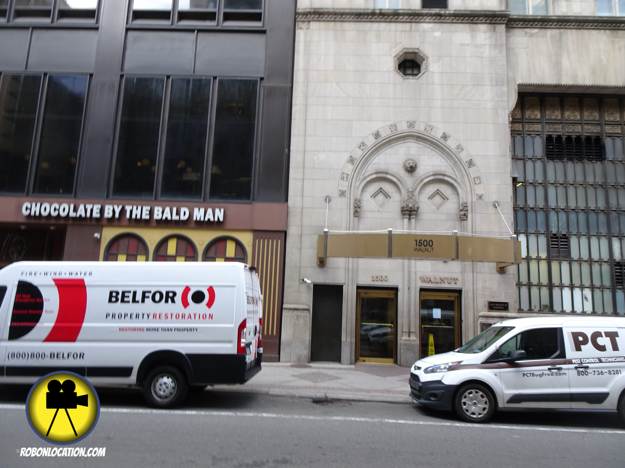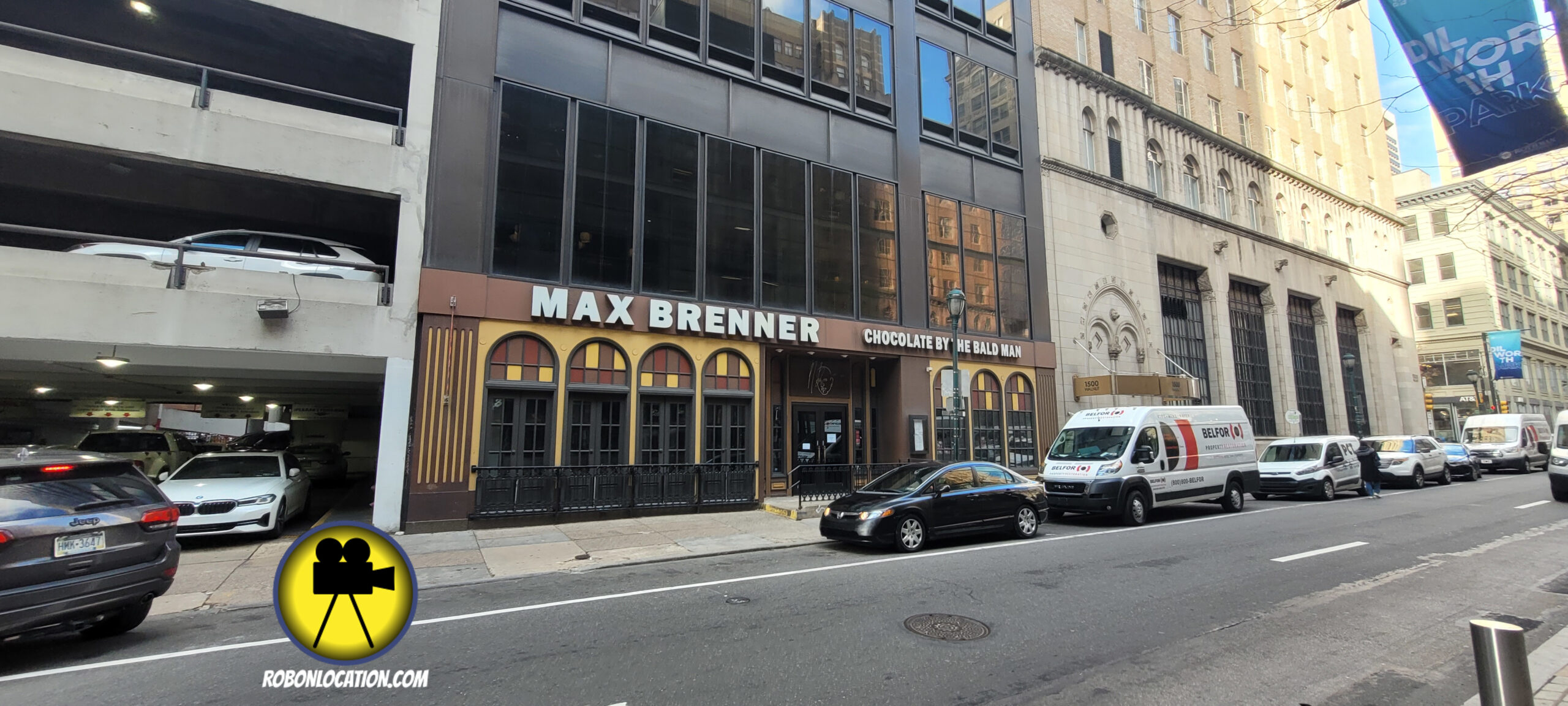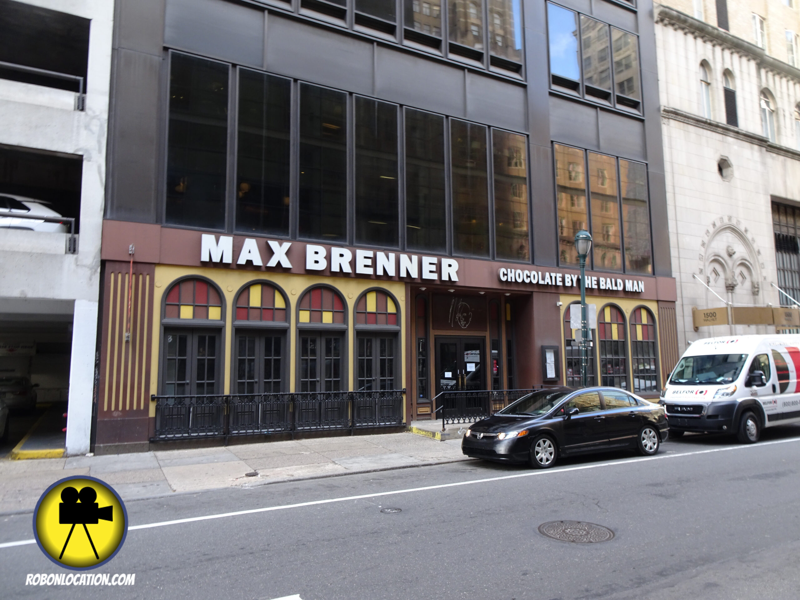 Malcolm and his wife share an awkward anniversary dinner at a local restaurant. At the time of filming, the restaurant was known as the Striped Bass. It later become a steakhouse and then a chocolate store. It appears there is currently not an operating restaurant at that location.